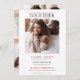 Celebre seus momentos alegres no estilo! Apresentando nosso cartão "Merrier Together" - uma combinação única e moderna de um cartões de natal, anúncio de noivado e salvamento de casamento, tudo em um cartão bem projetado. Perfeito para o casal que quer compartilhar sua história de amor durante a época mais maravilhosa do ano! Apresentando sua foto de noivado favorita, complementada pela manchete "Merrier Together" em uma caligrafia moderna manchada + serif moderna, o design festivo apresenta o tipo vermelho e preto em um fundo branco. O tipo personalizado abaixo anuncia graciosamente a sua noivado, e o excitante 'Salve a Data' para o seu próximo casamento, juntamente com os sentidos desejos de 'Feliz Natal'. Todo texto pode ser editado para cor e a maioria do texto pode ser personalizada. Perfeito para casais que buscam uma maneira moderna e na moda para anunciar seu noivado e a data do casamento, ao mesmo tempo que difundem a alegria de feriado, este cartão é ideal para aqueles que apreciam a design minimalista, com um toque de elegância festiva. Projetados para serem impressos em qualquer papel Zazzle de sua escolha, nós assumimos como padrão o belo e popular estoque de papelão, mas você pode escolher qualquer papel que quiser no Zazzle! (Nota, se você tem fotos muito coloridas, recomendamos impressão em alta definição, pois isso fará uma diferença notável!) Copyright Anastasia Surridge, todos os direitos reservados.