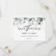 Este moderno design de save the date plano e branco com folhagem apresenta estilos coordenados de fácil combinação em preto e branco com delicados elementos de folhagem que adicionam um floreio gracioso em torno de uma tipografia simples e sofisticada e uma adorável caligrafia minimalista. O eucalipto aquarelado e outras folhas botânicas se curvam lindamente por todo o design, com esmeralda escuro desvanecendo em um efeito ombre para verde menta claro - para adicionar apenas o toque certo de natureza rústica e sofisticada a um fundo contemporâneo neutro. Esta coleção linda criaria perfeitamente um ar de elegância polida para o seu casamento dos sonhos, formal ou casual, ou outro evento especial. Como em todos os nossos designs, se tiver alguma dúvida ou pedido especial, por favor entre em contato.
