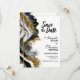 Informe seus amigos e entes queridos do seu futuro casamento com este moderno e elegante save-the-date de ágata preta e dourada. (Nenhuma purpurina real foi usada neste convite.)