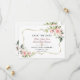 Desenho de cartão elegante com flores cor-de-rosa e folhas verdes em aquarela, uma moldura dourada falsa, divisor floral, em um fundo branco. No verso, buquê de flores coradas. Use a ferramenta Personalizar para adicionar suas informações, alterar as fontes e as cores das fontes. Para itens correspondentes, visite minha Coleção de Flores Creme Coradas.