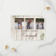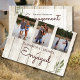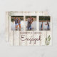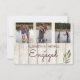 Simples e Moderno Convite ao Noivado. 3 fotos podem ser substituídas por suas. Uma folha simples figura no design rústico. A tipografia está em uma fonte moderna. Todo o texto é facilmente alterado para adicionar suas próprias informações. Este convite personalizado está sozinho, mas faz parte de um pacote de papéis de carta de casamento do just Fine Designs.