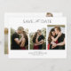 Nossa melhor venda Salve a data obtém uma atualização horizontal! Este design moderno e elegante apresenta três fotos verticais de você e seu noivo na frente, com um roteiro elegante com letra de mão. A parte traseira da placa apresenta uma foto horizontal de perda de cheio para uma incrível aparência geral. Copyright Designs da Anastasia, todos os direitos reservados.