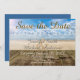 Clique em "Personalizar" para alterar as cores das palavras! Projetado com a imagem chic da praia com uma doca rústica. Esta placa apresenta um modelo totalmente personalizável para um lançamento Salvar a data que inclui o primeiro e o sobrenome do casal.