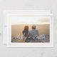 Compartilhe os detalhes do seu casamento com esta bonito e moderna foto, salve o cartão. Este documento de salvamento apresenta uma borda de gradiente pastel em negrito para um toque iridescente, que enquadra uma grande foto e os nomes dos casais em uma fonte de script manuscrito. A parte de trás repete a mesma ousada borda de gradiente pastel, com duas fotos adicionais e um local para adicionar um site de casamento ou outros detalhes.
