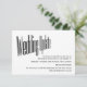 Um simples anúncio de casamento informando os convidados que o casamento foi adiado. Foi incluída uma nota segundo a qual serão enviadas mais informações no futuro.