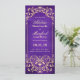 Esses convites de save the date finos e elegantes, em tons deslumbrantes de ouro pálido resplandecente e roxo berinjela suntuoso, são uma mistura de bom gosto das sensibilidades Art Nouveau e Vitoriana, com uma moldura sofisticada de belos redemoinhos e delicados ornamentos, e texto em fontes clássicas serif e block. A redação do RSVP do casamento é completamente personalizável. Personalize o verso com a data de resposta.