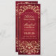 Esses convites de salvar a data do casamento finamente elegantes, em tons deslumbrantes de dourado pálido resplandecente e vermelho rico, são uma mistura de bom gosto das sensibilidades Art Nouveau e Vitorianas, com uma moldura sofisticada de adoráveis espirais e delicados ornamentos, e texto com fontes clássicas serif e block. A redação do RSVP do casamento é completamente personalizável. Personalize o verso com a data de resposta.