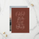 Enquanto um lado apresenta todos os detalhes do seu casamento em tipografia elegante contra um fundo de terracota, o outro lado apresenta uma única foto vertical. Este save the date é o presente perfeito para compartilhar suas fotos de noivado ao anunciar o seu grande dia.