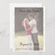 Design front features the photo you supply displayed against a white background. The semi-transparent effect helps to create the appearance of fine elegance. Heading, date, names and city are all displayed in a dark silver-colored Nuptial font. Photo is bordered with a flourish.
