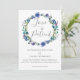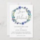 Avise aos seus convidados que seu casamento foi adiado devido a circunstâncias imprevistas com esta bela coroa de flores roxas de violeta e rosas de água índigo. Elegante mude os cartões de data para que sua família saiba salvar uma nova data no futuro porque Amor é Paciente.