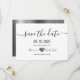 Casamento moderno, simples, minimalista, tipografia preto e branco, salvem o convite de data com coração chic e prata falsa.