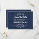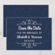 Estes cartões salve a data são perfeitos para qualquer casal planejando um casamento romântico moderno. O design apresenta estrelas simples e muito elegantes sobre um fundo azul marinho chic com uma letra branca tendenciosa. Este design pode ser personalizado para se adequar ao seu evento especial e será o anúncio perfeito para qualquer partido moderno e moderno, incluindo chás de panela, noivados, chás de casamento, festas de aniversário e muito, muito mais.