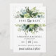 Folhas suculentas modernas do casamento, exceto o convite para o cartão, com folhagem verde e eucalipto fresco e faíscas douradas, Rosas embebidas ©