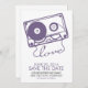 Anúncios contemporâneos e exclusivos de salve a data de casamento apresentam uma ilustração legal de uma fita cassete.