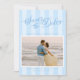 Anuncie sua data de casamento com nosso casamento moderno, mas elegante, Salve o cartão de Datas em um tom tão bonito de azul pastel. Esse design apresenta fitas de pré-disquete em tons alternados de azul em pó, na frente e atrás, que emprestam um toque chic elegante, enquanto ainda são frescas e tendas. O design apresenta "Salvar a Data" escrito em um roteiro clássico de caligrafia com uma sensação nostálgica, de vintagem e um toque de capricho. Tem certeza de que abomina seus entes queridos com este único cartão de data!