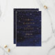 Um design ousado e moderno com estrelas que brilham brilhantemente com ouro falso num céu noturno pintado para uma celebração do amor que brilha para sempre no nosso universo. (note que o ouro estará no impressão e não será prensado em folha de alumínio.)
