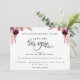 Anuncie sua nova data de casamento com este simples e elegante "Tente o Vamos novamente" Salve o cartão de data. Design com buquês florais deslumbrantes com grama pampas e roxo, cor-de-rosa pincelado, flores de creme e frase "Vamos tentar novamente" em caligrafia moderna e escrita manual. A frase no topo "o amor é paciente e vale a pena esperar" pode ser mudada para qualquer outra frase que você quiser ou até apagar. Adicione sua mensagem, data, hora, local e quaisquer outras informações extras que desejar. Volte com detalhes do canto floral e o logotipo de "nova data" do na moda com a frase "nova data" na caligrafia moderna, sua data abaixo e nomes de cheio e noiva.