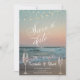 Pavimento de praia, luzes de cordas, vidro de champanhe e roteiro. Salve com beleza a data que pode ser personalizada com seu nome.Selecione o botão "personalizar" para alterar o estilo, a cor e o tamanho da fonte.