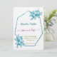 Anuncie seu próximo casamento de praia em estilo com esses Cartões salve a data inspirados no oceano. Apresentando um vibrante trabalho de arte floral azul e uma estrutura geométrica moderna, estas cartas definem o tom perfeito para a sua celebração costeira. Texto totalmente personalizável e uma opção fotográfica no verso fazem com que seja exclusivamente seu.