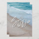 Celebre seu amor pelas praias serenas com nossos Cartões salve a data de Casamento de Praia Elegante. A frente apresenta uma frase delicada e sentida de "Salvar a Data" em uma requintada caligrafia vetorial, simbolizando o amor que o liga. Seus nomes e a data significativa são exibidos elegantemente em branco, acrescentando um toque pessoal a esses convites encantadores. O verso continua a magia com texto personalizado salvando o detalhe da data em um pano de fundo da costa sob o céu azul claro.