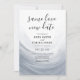 Anuncie sua nova data de casamento neste convite de casamento elegante com pincelada de aquarela em azul cinza empoeirado. Personalize os detalhes do seu casamento com tipografia preta em negrito e manuscrita.