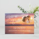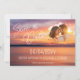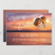 Anuncie seu dia especial com este romântico tema de destino salve o cartão de data apresentando uma foto de fundo solar laranja e roxa de Destei e uma área de fotos personalizável para seu retrato de casal. O texto do roteiro elegante diz "Salvar a Data" junto aos detalhes do seu casamento, com uma nota na parte inferior informando que um convite formal será seguido. Uma maneira quente e na moda para convidar os entes queridos a marcar seus calendários.