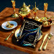 Esta design do cartão de casamento mostra um quadro de ornamentado, ouro com detalhes florais e botânicos intrincados, criando um sentimento real e luxuoso. O fundo preto profundo é contrastado por fitas lacrimogêneas e azuis escuras, adornadas com delicados padrões de ouro, acrescentando um toque de elegância e sofisticação. O estilo de arte combina elementos clássicos e modernos, com foco em detalhes opulentes e contrastes de cores ricas, fazer-a uma escolha perfeita para uma celebração formal e grandiosa de casamento. Personalize o texto relativo aos nomes e detalhes do casamento. Você pode baixar a placa para seu dispositivo móvel ou computador. Eu desenhei o cartão com a ajuda de um ar generativo.