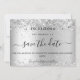 Um moderno e elegante Salve a Data para um casamento. Um fundo prateado falso decorado com confete. Personalize e adicione uma data e nomes. O texto: Salvar a Data é gravado com um script de estilo com letra de tendência grande.
