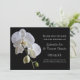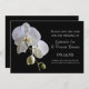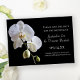 A Orquídea Branca bonito no Casamento Negro Salve o Anúncio de Data estabelece um humor elegante para a sua cerimônia de casamento iminente. Este típico nupcial floral conserva o cartão de aviso de data com uma fotografia floral de flores de orquídeas brancas falaenopsis e botões no caule com fundo preto.