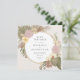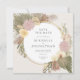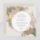 Este convite tem uma aquarela inspirada pela boêmia que apresenta capim-pampas, orquídeas, palmeiras e flores de proteína e uma moldura de ouro simulada ao redor do círculo. O fundo atrás do círculo pode ser alterado ou excluído se você quiser branco. A cópia é editável e a fonte pode ser alterada. O cartão tem um fundo colorido, um pouco mais escuro do que a frente. Você pode mudar a cor de trás.