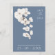 As modernas orquídeas azuis floridas Salvem o Design do Cartão de Data, em um fundo azul empoeirado, simples, com um cheio castanho escuro delicado de flores e petabais brancas de orquídeas brancas; ao lado do texto branco minimalista em uma bela fonte moderna. O Coletivo de Domingo © por Rachel Hannah Gee