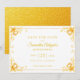 Anuncie sua Quinceañera em estilo com este Ouro de luxo Branco Floral e Dourado Guarde o Cartão de Data. Com sotaques florais intrincados de ouro sobre fundo branco nítido, esse design expele sofisticação e elegância. O detalhamento luxuoso do ouro fornece um toque glamouroso, enquanto o cenário branco minimalista mantém o aspecto moderno e chique. Perfeito para dar o tom de uma celebração inesquecível de Quinceañera, este Cartão Salvar a Data irradia luxo e graça. Itens correspondentes estão disponíveis.