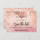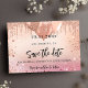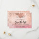 Uma cinta e uma moda Salve a placa Date para uma festa de aniversário 18th (ou qualquer idade). Um fundo cor-de-rosa pincelado, rosa dourado, decorado com pingos de brilho falsos, faíscas e balões. Personalize e adicione uma data e nome/idade. O texto: Salvar a Data é gravado com um script de estilo com letra de tendência grande.