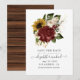 Casamento salvará a data com rosas brancas e marrom e girassóis com tipografia elegante.
