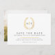 Foliage oval wreath of Foliage foto de casamento salve o cartão de data em branco, preto e dourado. Edite esta opção para salvar o cartão de data com seus próprios nomes e data de casamento em um lado e sua própria foto no sentido inverso. Outros itens correspondentes e opções de cor estão disponíveis. Folhas originais desenhando e design por Sarah Trett para www.mylittleedenweddings.com