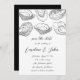 Convide seus amigos e família para marcar seus calendários para seu próximo casamento com esse belo tema de ostra branca e negra Salve as Datas. Excelente para um casamento de praia, litoral ou tropical. Personalize facilmente o texto com o editor on-line.