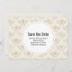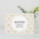 Cartões salve a data com um padrão elegante com espécimes do gênero Bombus spp. dourados num padrão repetitivo num fundo creme colorido.