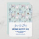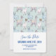 Um cartão plano para salvar a data com um padrão bonito com lhamas brancas. Um está deitado, um está segurando uma flor na boca dele, e um está olhando para você desconfiadamente. Estes animais têm um grande caráter encantador. Colocado sobre um fundo de bolinhas verde.