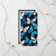 Borboletas realistas, azuis e brancas têm um padrão uniforme em fundo preto.