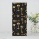 Padrão perfeito de chaves antigas, douradas e silhuetas em fundo preto.