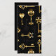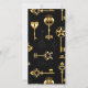 Padrão perfeito de chaves antigas, douradas e silhuetas em fundo preto.