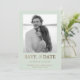 Comece sua jornada de casamento com este cartão único e elegante, salve o cartão de data, com uma foto clássica em preto e branco moldada por um fundo verde sábio. O texto "Salvar a data" é destacado em ouro metálico falso luxuoso, adicionando um toque de sofisticação e elegância ao design. Perfeito para casais que procuram um eterno e uma estética moderna, este cartão é facilmente personalizável com a sua fotografia e detalhes de casamento, fazer-o como uma lembrança memorável para os seus convidados.