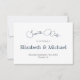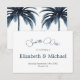 Um elegante casamento elegante da Palm Tree azul "Salve a Data". Uma Árvore de Palma de eterno eleva este simples 'Casamento Salve a Data' para anunciar seu casamento elegante. A palmeira é parceira de uma fonte clássica. Design de casamento simples e elegante, mande o seu convite personalizado adicionando as suas próprias informações a este modelo para o seu próprio exclusivo 'Guardar a Data'