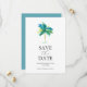 Coloque o tom para sua celebração tropical com esta palmeira simples e minimalista, salve a data, apresentando trabalho de arte de cor d'água original em tons de turquesa, azul e verde. Perfeito para um casamento na praia na Flórida, Havaí, ou qualquer destino na ilha, esta design oferece uma nova ideia de casamento de destino. Personalize facilmente com suas iniciais e detalhes do casamento usando os campos de modelo convenientes. Criada exclusivamente por Victoria Grigaliunas do Do Diga A Belle, isso salvou a data em pares lindamente com a suíte de convite para casamento de cheios. Explore a coleção correspondente em www.zazzle.com/dotellabelle.