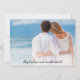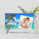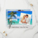 Este casamento com palmeira de praia de na moda, casamento Salve a data mostra sua própria foto e o ditado bonitinho, "Está acontecendo" em um elegante roteiro de caligrafia (que pode ser mudado para seu próprio texto,) em um fundo de praia tropical com palmeiras tropicais. Uma maneira maravilhosa de convidar seus hóspedes para o seu casamento tropical litoral ou de frente oceânica no Havaí, Flórida, Califórnia, México ou outro local de casamento de destino.