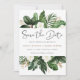 Um belo e moderno cartão de data com flores e folhas pintadas à mão. Este design elegante vai adicionar um toque perfeito ao seu casamento. Personalize-o com os seus detalhes ou adicione-lhe uma nova redação!
