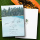 Uma bela palmeira tropical aquática e design de casamento de praia. Um design único com palmeiras, paisagem tropical de praia como fundo. Um design de casamento de destino de Verão moderno com palmeiras e tons de cor de Boho modernos. Um casamento elegante salve a design do cartão com elementos modernos. Os convites de casamento e outros artigos de papelaria também estão disponíveis.