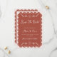 Anuncie o seu grande dia com este espantoso cartão de salvamento, com papel picado mexicano tradicional e ornamentos de Talavera numa cor quente de terracota. Perfeito para um casamento de temas latinos ou inspirado em fiesta, este cartão dá o tom para uma celebração memorável cheia de encanto cultural e elegância. Os intrincados padrões picado e Talavera criam um pano de fundo belo e festivo, simbolizando alegria e unidade. Personalize com os nomes do casal e a data do casamento, assegurando que seus entes queridos marquem seus calendários para esta ocasião especial. Ideal para casamentos rústicos, de destino ou ao ar livre, este cartão guardado captura o espírito da herança mexicana enquanto oferece uma prévia na moda do seu grande dia. Avise aos seus hóspedes que eles foram convidados para uma celebração inesquecível com esta carta maravilhosamente desenhada!