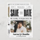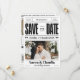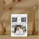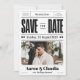 Este único preto e branco que salva a data apresenta um layout lúdico de jornal, perfeito para um casamento divertido e moderno. É mais do que salvar a data, é um anúncio esquisito da sua história de amor!