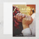 Um moderno cartão de aviso de data ou anúncio de casamento com as palavras “Para sempre tem um som agradável!”, além da sua foto e detalhes.